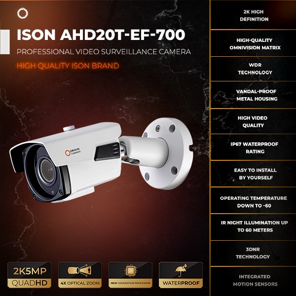 Characteristics of ISON AHD20T-EF-700 5MP CCTV camera: