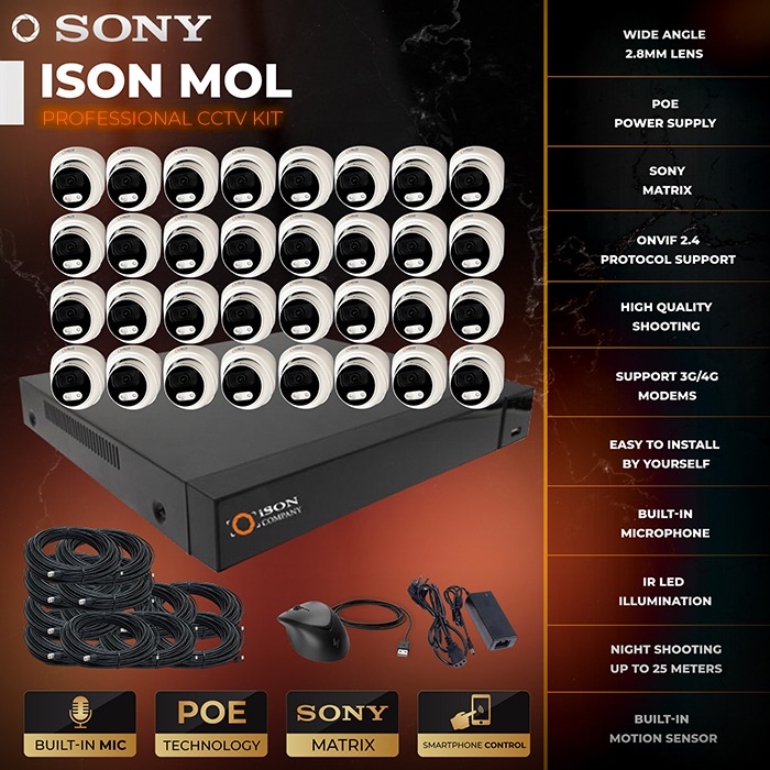 - 32 all-weather outdoor IP cameras with built-in microphone ISON IP30SL 2MP;
