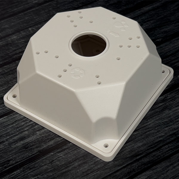 Plastic box for mounting cameras on horizontal and vertical surfaces with protection of connector connections.