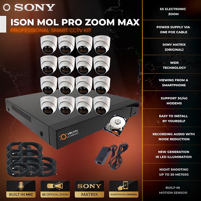 Video gözetim sistemi ISON MOL PRO ZOOM MAX-S'nin özellikleri: